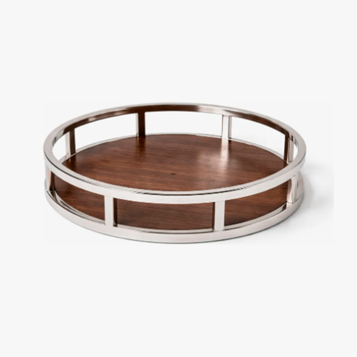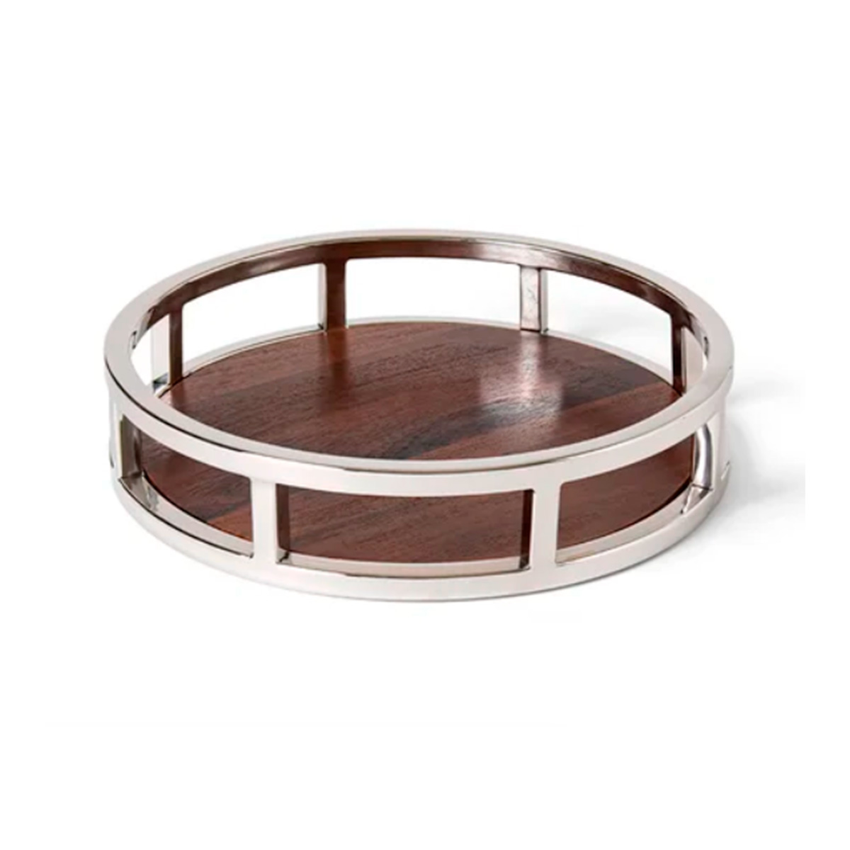Bandeja de Aço Inox com Madeira Acácia – 29cm