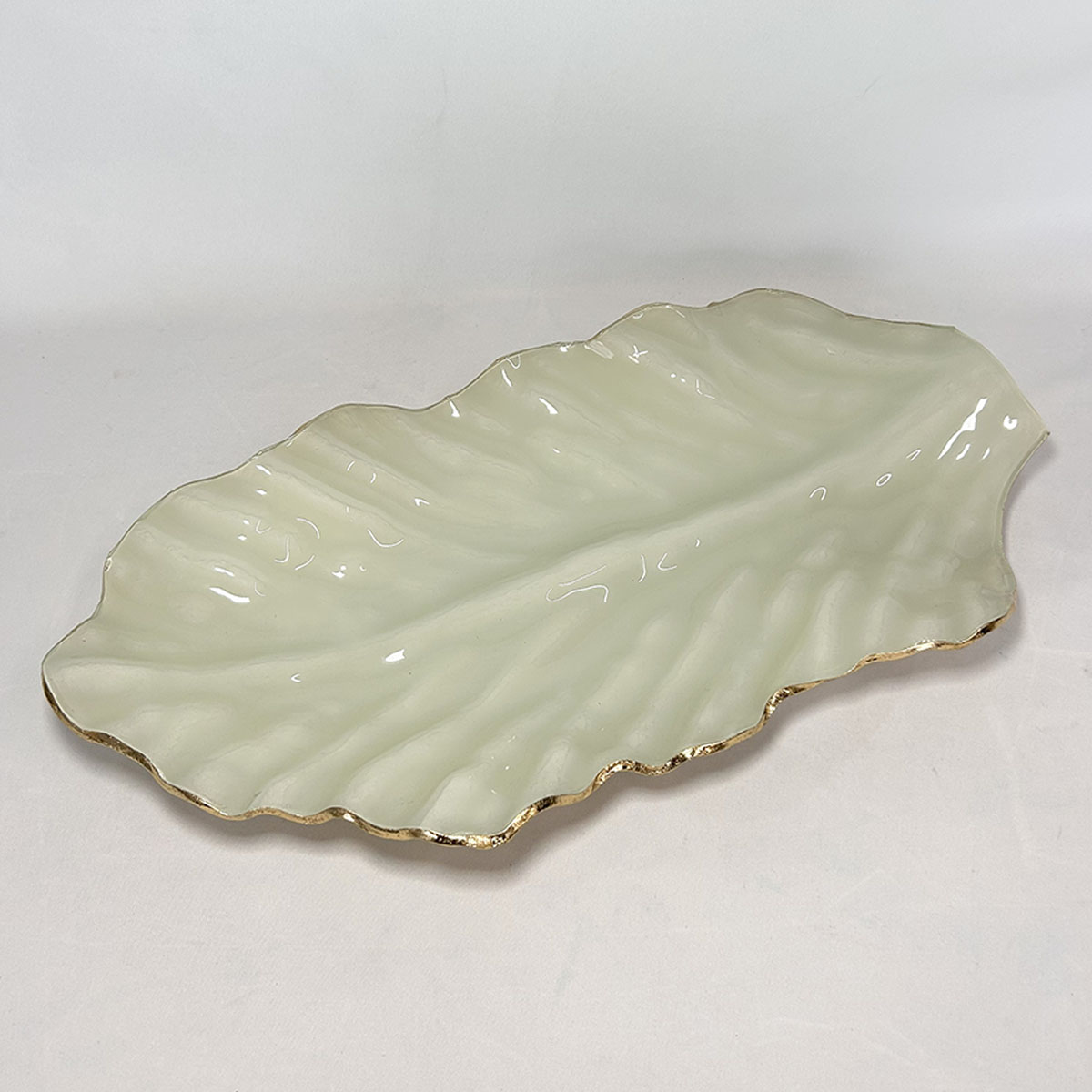 Centro Mesa Folha M. Off White B. Dourda 55 x 30 cm – Ad61074B