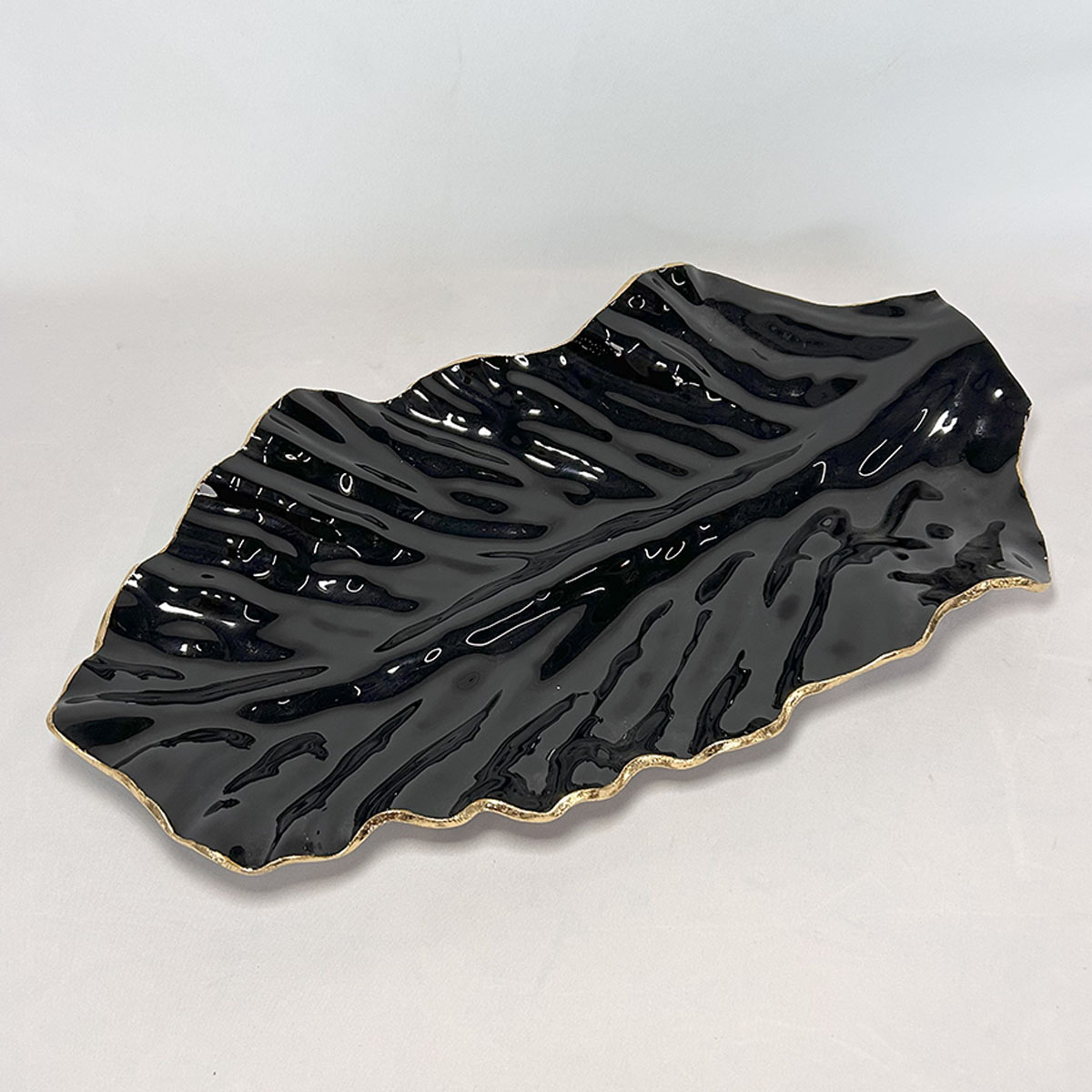 Centro Mesa Folha M. Preto B. Dourado 55 x 30 cm – Ad61010B
