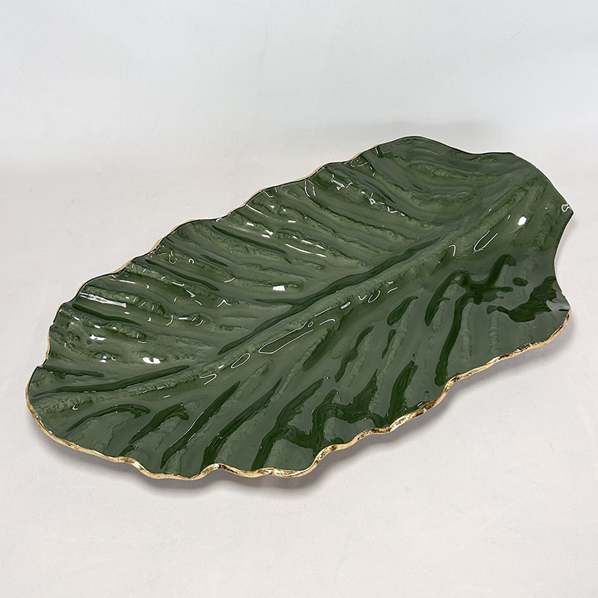 Centro Mesa Folha M. Verde B. Dourada 55 x 30 cm – Ad61094B