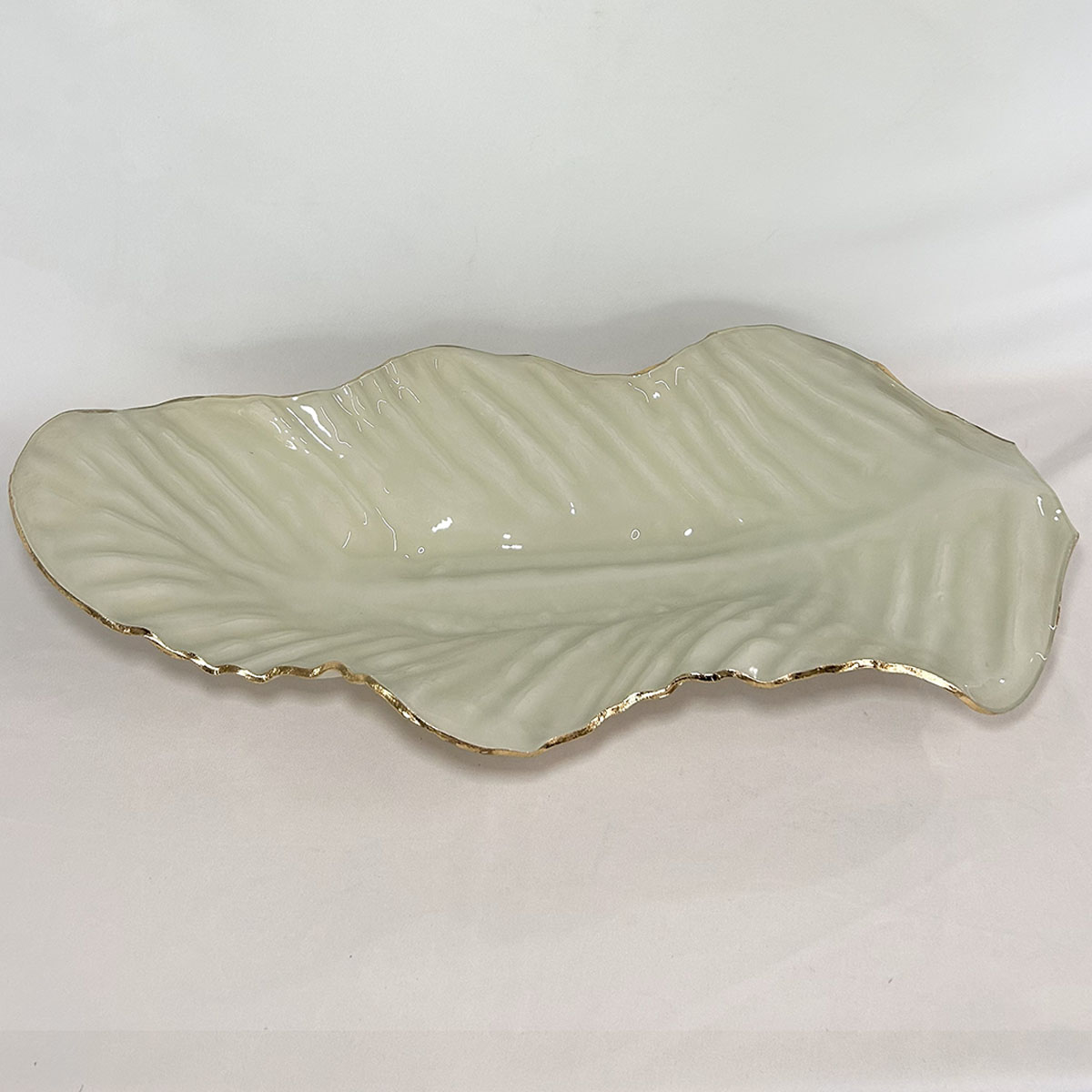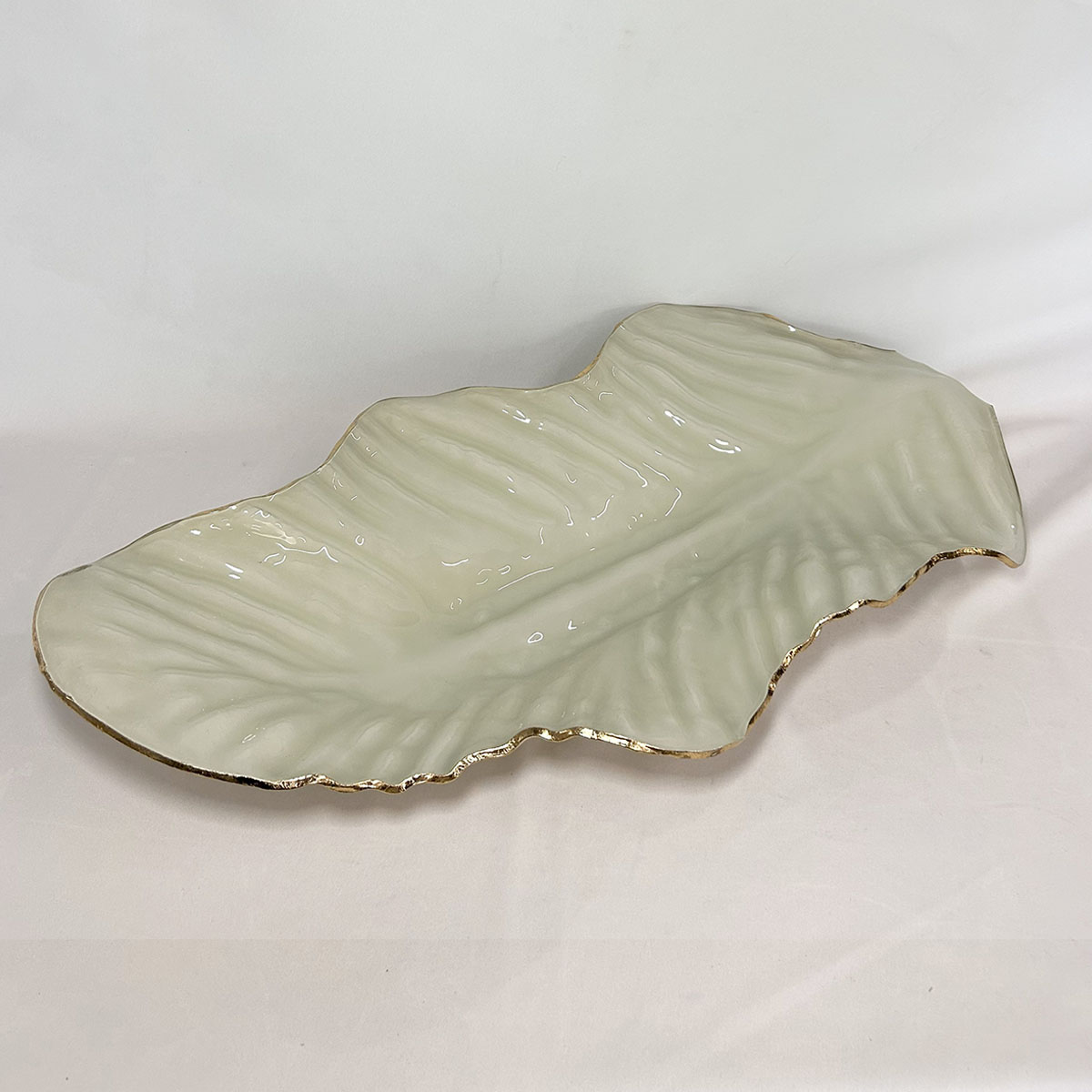 Centro Mesa Folha Off White B. Dourda 76 x 42 cm – Ad33374B