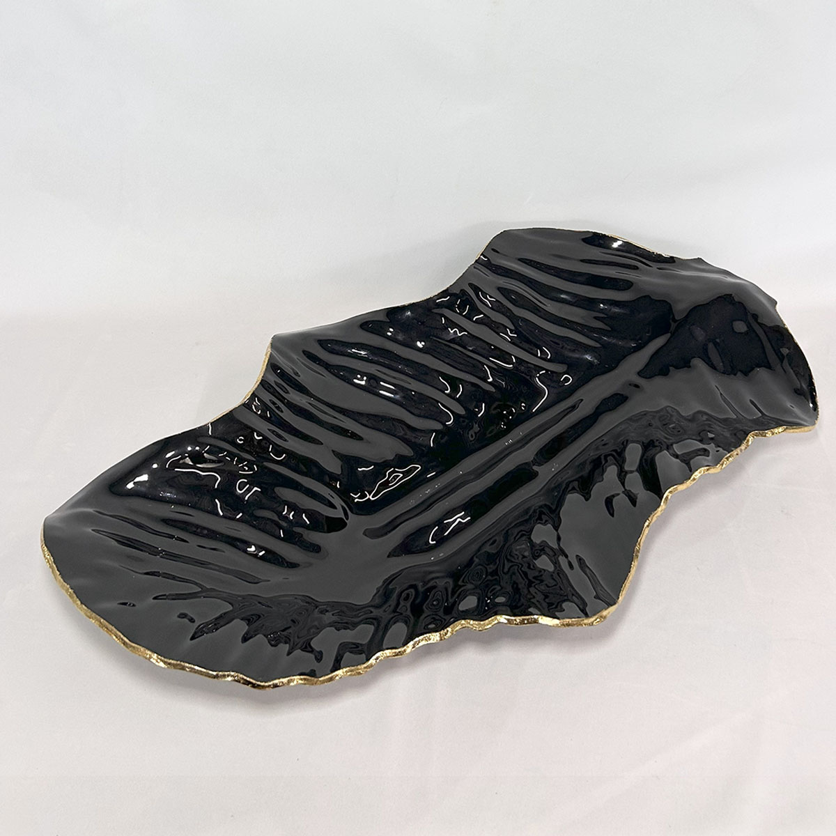 Centro Mesa Folha Preto B. Dourado 76 x 42 cm – Ad33310B